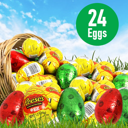 Easter Peanut Butter Creme Chocolate Eggs – Basket Stuffers & Party Favors for Kids & Adults – Colorful Candy Shells, Perfect for Bowl Décor & Egg Hunts (24 Count, Peanut Butter Creme)
