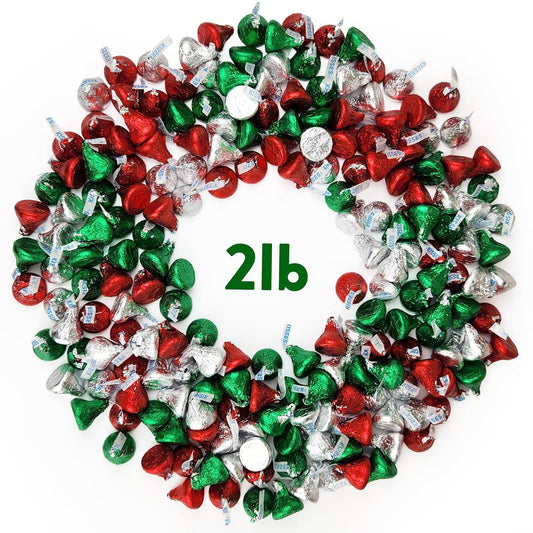 Christmas Milk Chocolate Kisses, 2 lb Bulk Bag – Red, Green & Silver Foil Wrapped Holiday Candy – Perfect for Stocking Stuffers, Gift Bags, Candy Dishes & Parties