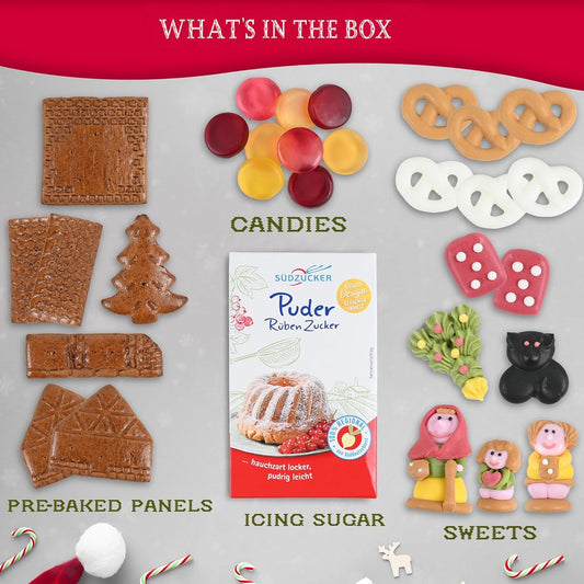Gingerbread House Kit For Kids And Adults – DIY Christmas Decorating – Pre-Baked 32 Ounce Kit With 7 Pre-Cut Panels, Icing And Candies – Easy Assembly, No Baking Needed