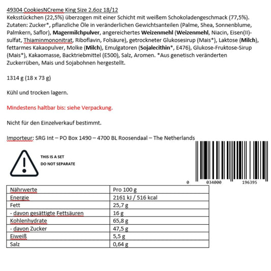 HERSHEY'S COOKIES 'N' CREME King Size Candy, Bulk, Individually Wrapped, 2.6 oz Bars (18 Count)