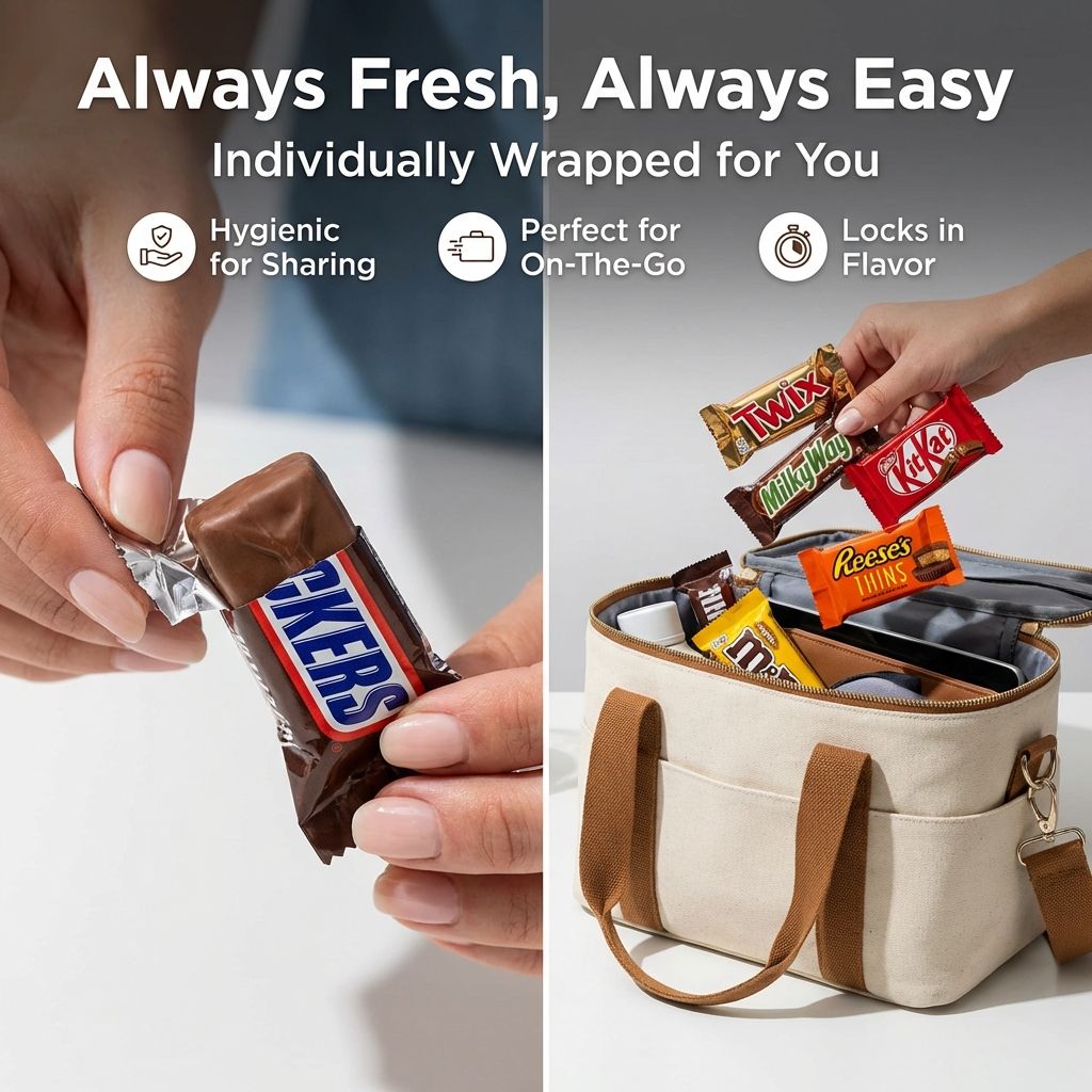 - Clean and Convenient Snacking - With every chocolate bar individually wrapped, this bulk candy mix is great for hygienic, grab-and-go snacking at home, in the office, or on the road.